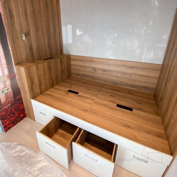 Наша компания занимается изготовлением мебели с 2013 года. Помимо подиум кроватей мы делаем на заказ встроенные шкафы любой сложности в спальню, детскую, гостиную, прихожую и ванную комнаты, межкомнатные перегородки и зонирование помещения любого вида также входят в наш список. Таким образом, наша компания обладает многолетним опытом, квалифицированными сотрудниками и гибкой системой скидок. У нас собственное производство, расположенное в Московской области.